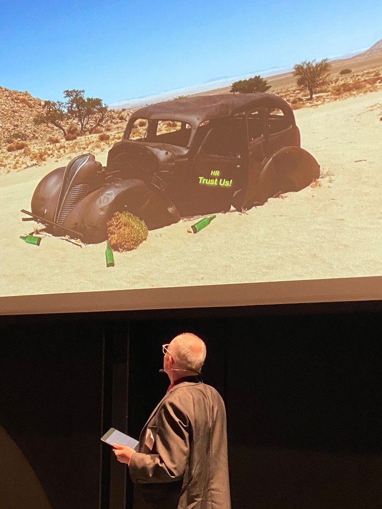 Highlights were many and varied. My favourite slide of the night was Jussi Luukkonen’s depiction of HR as a clapped out, abandoned old car and Mat Kearney’s message to “get out of HR” to experience life on the other side and then bring that experience back to HR really resonated with me.